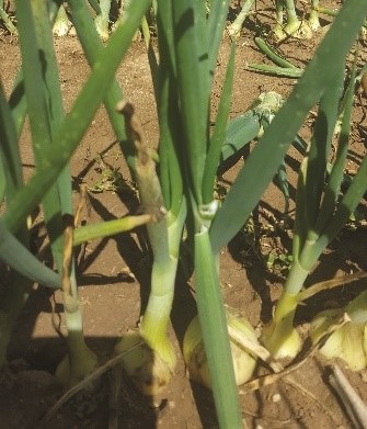 Cette maladie se déclare par un jaunissement du limbe du haut vers le bas. Les racines sont également touchées : leur volume diminue et leur couleur devient rose et marron par la suite. Puis, le plateau du bulbe pourrit. Cette pourriture s’étend ensuite aux écailles. Attention, la fusariose peut aussi apparaitre lors de la conservation au travers d’une pourriture molle ou sèche de couleur blanc rosé. Comme la fusariose reste en terre durant de nombreuses années, il est préférable de privilégier des rotations longues.